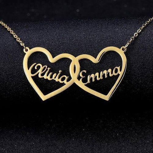 Double Heart Personalized Name Necklace